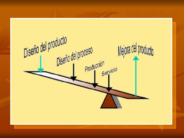 Métodos Taguchi: Ingeniería de la Calidad n n La Ingeniería de la Calidad se enfoca directamente a la consecución de la Calidad por Diseño, introduciendo la Calidad en el diseño en lugar de extraer la mala calidad del producto manufacturado. El concepto de Calidad por Diseño se ilustra muy bien con la imagen de la palanca de la calidad, en la que vemos que, cuanto más lejos de la producción apliquemos el esfuerzo, mayor será su efecto sobre la calidad del producto, y nos costará menos
