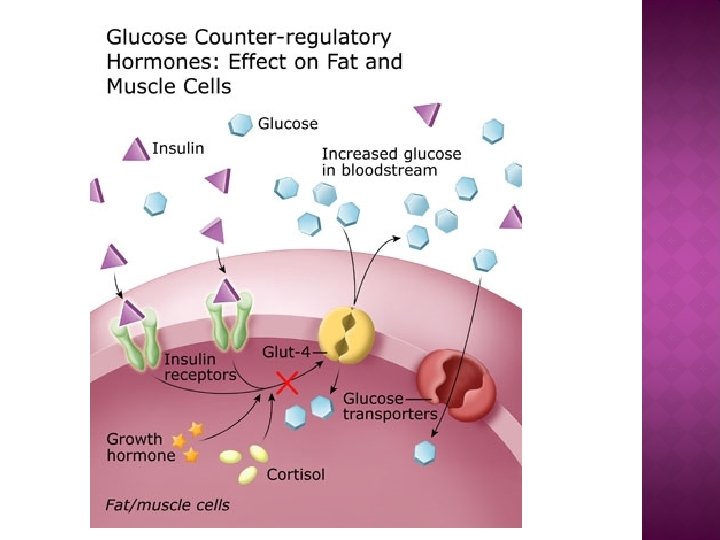 q § § CHO metabolism: Hyperglycemic glucose uptake by tissues (skeletal muscles and fat). rate of glucose utilization throughout the body glucose production by the liver ( gluconeogenesis) insulin resistance ( FFA) (diabetogenic )