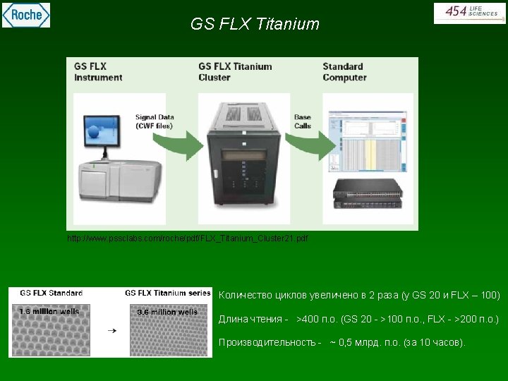Распределение длины FLX-сиквенсов (Titanium) Run completed with improved Genome Sequencer FLX Titanium series chemistry demonstrating a modal read length of 766 base pairs. http: //www. 454. com/products-solutions/future-of-454 -sequencing. asp