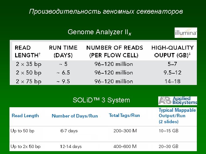 Динамика роста производительности cеквенаторов SOLi. D http: //www 3. appliedbiosystems. com/AB_Home/applicationstechnologies/SOLi. DSystem. Sequencing/overviewofsolidsystem/index. htm