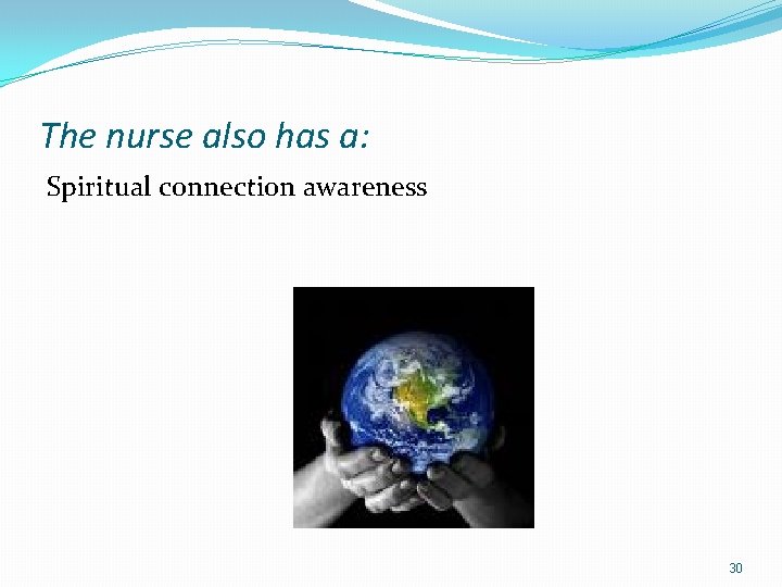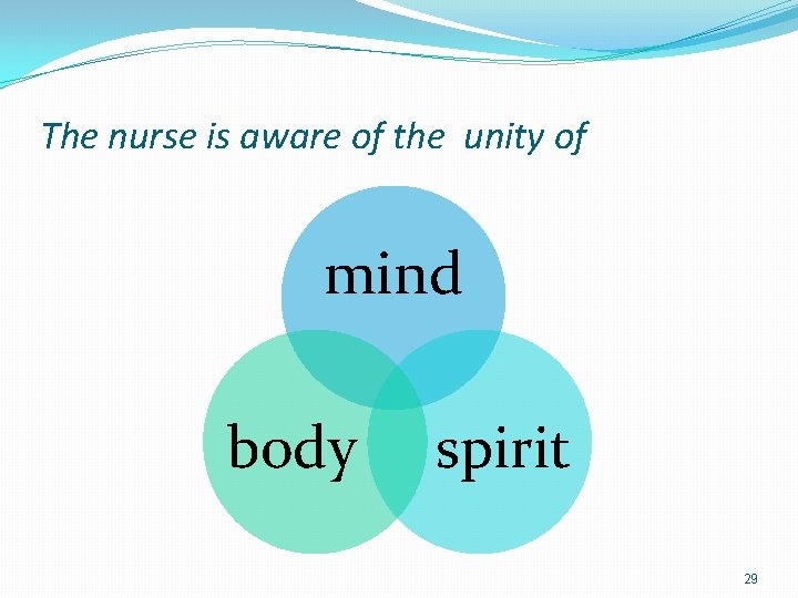 The Nurse Sees: � Everyone as unique and whole �Not defined by illness or disease 27