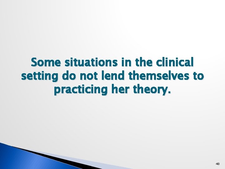 Some situations in the clinical setting do not lend themselves to practicing her theory. 48