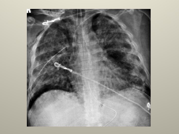 Causas de SDRA • • • Sepsis Aspiración Neumonía Intoxicación Ahogamiento Inhalación de tóxicos Quemaduras extensas Contusión pulmonar Tranfusiones • • • Embolía grasa Obstrucción vía aérea sup. Transplante Drogas Revascularización miocardica Pancreatitis Neumonía eosinofila BOOP TBC miliar