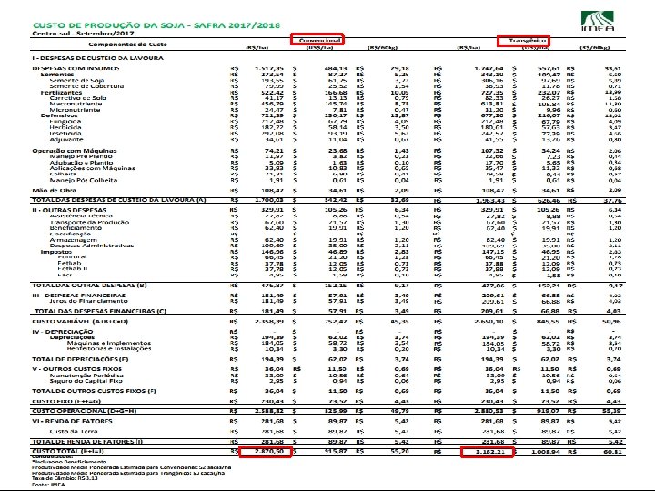 ESQUEMA BÁSICO DO AGRONEGÓCIO SOJA CPS PMG CV UBS TSI ARM SEC LAS Empresa Produtora Sementes de SOJA Custo médio de produção: R$3. 000, 00/ha – ex. Faz. 10. 000 ha: >>10. 000 x R$3. 000, 00=R$30. 000, 00/safra ou US$10, 000. 00/safra; Preço da soja: R$67, 65/sc (CEPEA USP – 2/10/2017), ou seja, custo de 45 sc/ha, prod. média Brasil: 50 sc/ha. . . Ind. Máquinas Implem. Agríc. Corretivos Fertilizantes Cooperativa Revenda Fazenda Produtora de “GRÃOS” de S O J A Inoculantes GRÃO “Moageira” Trading Defensivos Agrícolas Mundial ÓLEO FARELO 80% China Logística Mercados Nacional