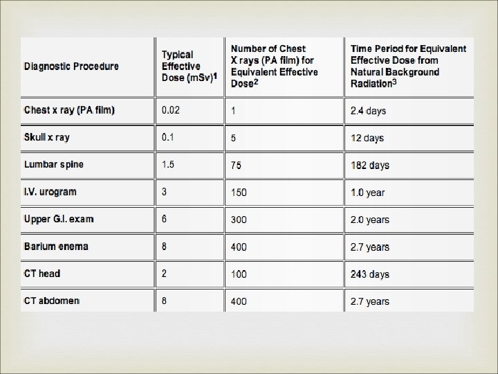 FACTORS AFFECTING PATIENT DOSE : k. V : v Commonly set to 120 k. V. v Increases dose exposure. m. A : v Constant m. A technique. v m. A modulation technique : 10 – 40 % dose reduction is possible. Helical or Axial Acquisition : v Slight greater in helical due to small amount of overscanning at start and end.