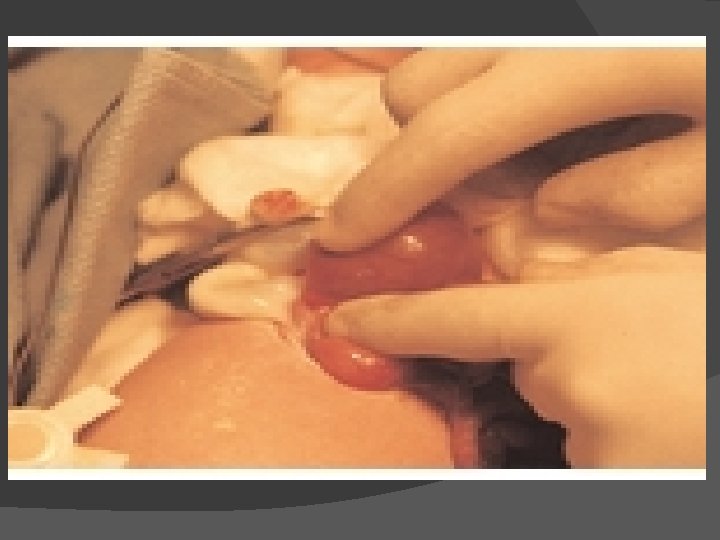 Surgical Treatment Surgical management is aimed at repairing the abdominal wall defect and reducing the protruded viscera Forcing the viscera into an underdeveloped abdominal cavity that cannot easily accommodate the herniated bowel can have dramatic effects on ventilation and oxygenation, as well as on cardiac output and systemic blood pressure (secondary to impaired venous return from the inferior vena cava) Excessive compression of the intestine can produce ischemia Thus, during abdominal closure, the anesthesiologist must anticipate the potential effects of decreased pulmonary compliance (increased airway pressure, decreased oxygen saturation, hypercapnia) and inadequate cardiac output If primary closure is not possible, a Silastic mesh prosthesis ("silo") is sutured to the fascia of the defect After the silo is in place, the extra-abdominal organs are then gradually returned to the peritoneal cavity over a period of 3 to 10 days