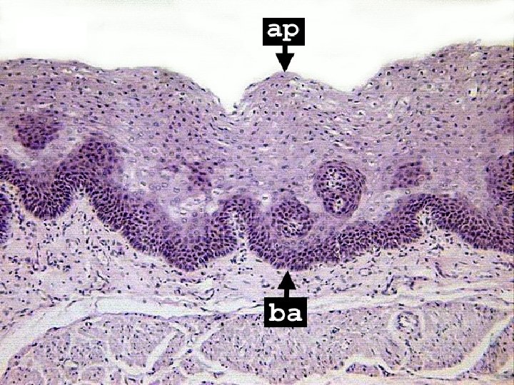 Stratum Lucidium (Clear Layer) • • • Thin, transparent band superficial to the stratum granulosum. Consists of several layers of flattened dead cells. The faint nuclear outlines are visible in only a few of the cells. The stratum lucidum can usually not be identified in thin skin. Present only in thick skin