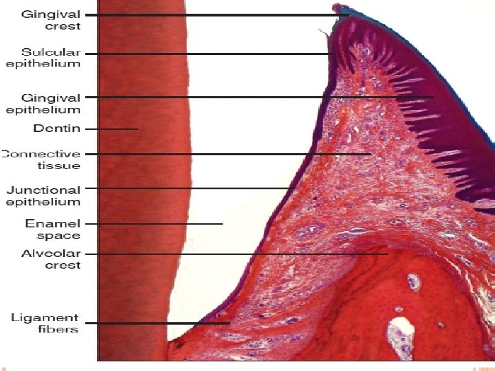 GINGIVA Consists of dense vascular fibrous tissue which is covered by mucuos membrane and attached to the alveolar margins of the jaws.