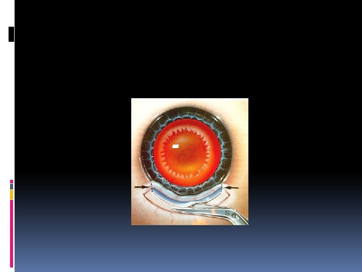 Technique Linear incision made in upper 1/3 rd to middle 1/3 rd of anterior capsule IOL implanted in the bag Cuts made at end of incision with vannas Capsule flap lifted torn off like in capsulorhexis