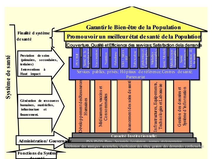 Leadership et gouvernance § Partenariat, participation sociale et réactivité du système § Régulation: réglementation sanitaire internationale et nationale § Redevabilité: rapports des progrès réalisés § Procédures comptables et gestionnaires transparentes § Autonomisation et contractualisation des services