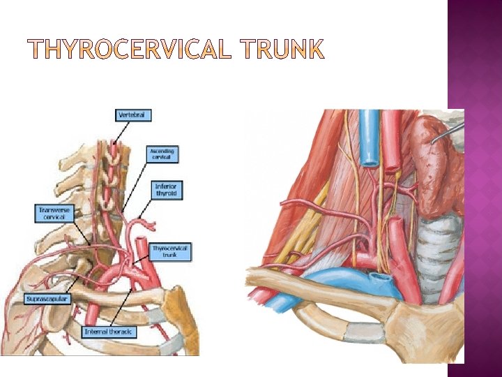 • • First part – subclavian artery Descends in the anterior thoracic wall Ends 6 th intercostal space by dividing into Superior epigastric artery Musculophrenic artery Upper 6 intercostal spaces – 2 anterior intercostal arteries Artery to the mammary gland