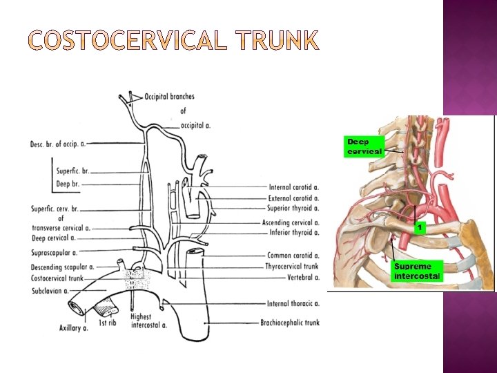 Origin: Rt. Side – brachiocephalic trunk Lt. Side – direct branch from the arch of aorta. Course: Arches laterally in the root of the neck in front of the apex of the lung. Passes over the superior surface of the first rib. Ends at the outer border of the first rib & continue as Axillary artery