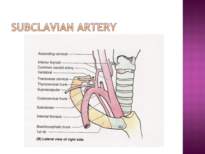 Subclavian steal syndrome Right subclavian artey-descending thoracic aorta-behind the oesophagus- compressdysphagia Lusoria. Cervical rib – compress- Subclavian arterydiminish radial pulse. Aneurysms-compress-brachial plexus.