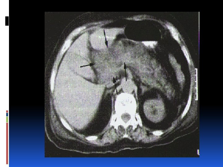 Radiología Gold standar: Tomografía Axial Computarizada contraste IV. Brinda información sobre: Configuración de la glándula y la existencia o progresión de exudados. TAC Dinámica: Disminución en captación de contraste IV= Pancreatitis Necrohemorrágica.