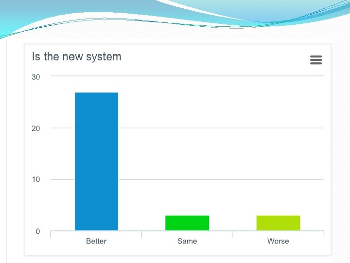 Culture • • • Most important step Be clear – why? Identify concerns and address first Equal partnership Staff workshops