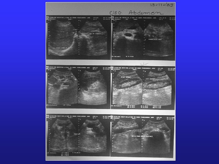 Biochemistry DATE 12/11/03 14/11/03 15/11/03 16/11/03 18/11/03 20/11/03 21/11/03 25/11/03 Prostatic acid Phosphatase 135. 19 - - - - T. Bilirubin 0. 48 - - - - Conj. Bilirubin Unconj Bilirubin 0. 10 - - - - 0. 38 - - - - Delta 0 - - - - SGPT 21. 0 - - - 10. 0 24 - 23. 0 SGOT 22. 0 - - - - S. Alkaline phosphatase 95. 0 - - - - S. Acetone - - 30. 0 - FBS 85. 7 - - 76 - - RBS - - - 84. 9 162. 0 - - 99. 8