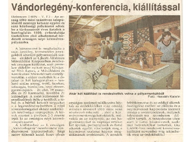 1. Az indulás, az előzmények • A Kézműves Alapítvány és az ÚÁMK Közösségi Háza 1993 -ban, Debrecen Szabad Királyi Várossá nyilvánítása 300. évfordulója tiszteletére hirdette meg először a fiataloknak szóló kézműves pályázatot. E helyi pályázat országos érdeklődést váltott ki és számos más településről is érkeztek pályamunkák. • Ez késztetett bennünket arra, hogy 1995 -ben a Honfoglalás 1100. évfordulója tiszteletére – most már együttműködő és szervező társakat keresve – immár hét civil szervezet és intézmény összefogásával meghirdettük az I. Országos Ifjúsági Népi Kézműves Pályázatot.