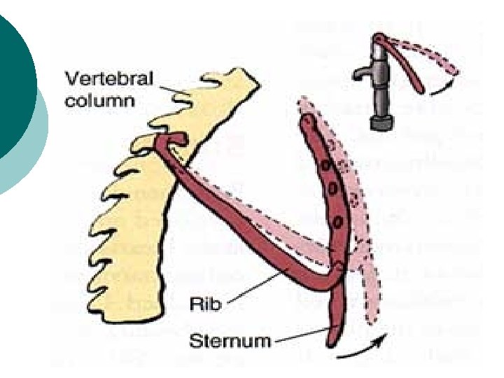 Movements of the Ribs ¡ Pump handle movement ¡ Increases ¡ Occurs A. P. diameter primarily at 2 nd - 6 th rib. ¡ Movement occurs at costovertebral joint.