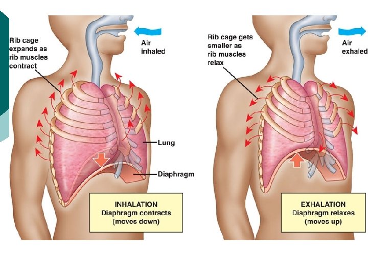 ¡ For Inspiration we want to increase 1. AP diameter of the thoracic cage. ¡ 2. Transverse diameter of thoracic cage. ¡ The above 2 are increased by rib movements. ¡ 3. Vertical diameter of thoracic cage ¡ l It is increased by contraction of diaphragm.