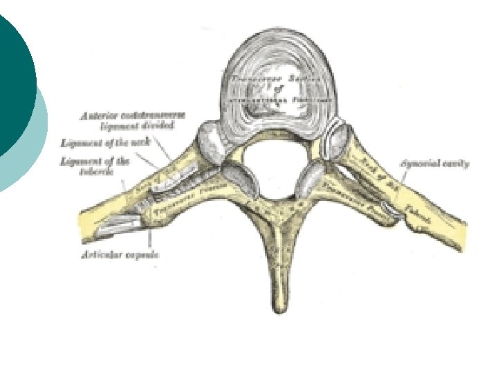 Joints of Thoracic cage… ¡ Inter-Vertebral Joint. l l ¡ Intervertebral Disc l l ¡ ¡ ¡ 2 joints with articular facets-Zygapophysial jt. Body of vertebras-Secondary cartilegenous jt. Annulus fibrosus Nucleus Pulposus(Ramnant of notocord) Ligaments. . -Ant. Longitudinal lig. -Post. Longitudinal lig. -Intertransverse lig. -Interspinous lig. -Supraspinous lig. -Ligamenta flava Movements-Flexion –Cervical and Lumbar V. -Extension –Cervical and Lumbar V. -Lat. Flexion-Rotation Thoracic V.