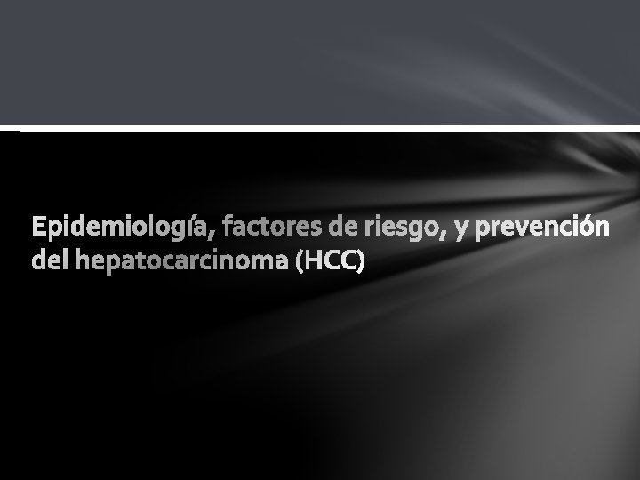Medidas para la prevención del HCC Prevención primaria Intervención en individuos relativamente sanos para evitar el desarrollo de cáncer y disminuir su riesgo de padecer cáncer Prevención secundaria Intervención en pacientes para la detección precoz antes de que aparezcan síntomas de un cáncer subclínico (screening/seguimiento) Prevención terciaria Control sintomático, y otras medidas de rehabilitación y tratamiento de los pacientes con cáncer Lippman S, Levin B. J Clin Oncol. 2004; 22: 3848 -51.
