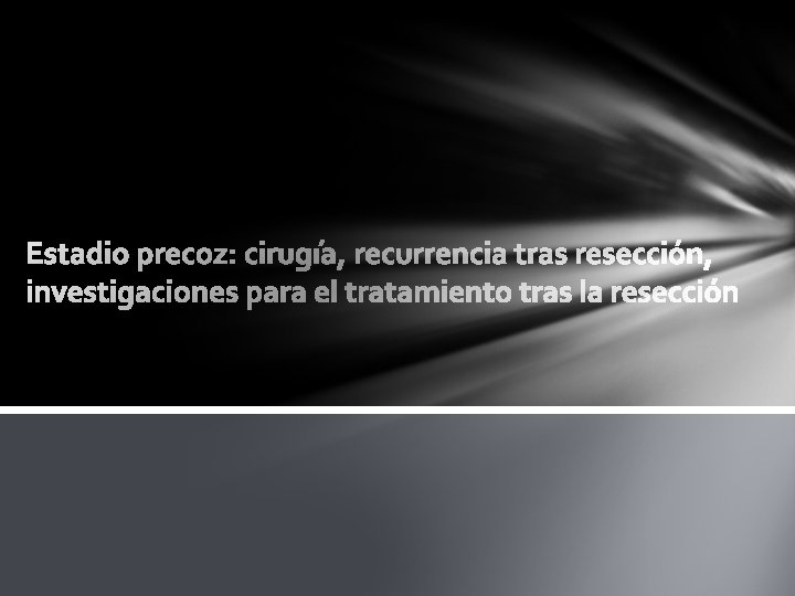 Conclusiones: Cirugía de los estadios precoces de HCC La resección quirúrgica es el tratamiento de elección para los pacientes con HCC precoz sobre hígado no cirrótico 1 La resección quirúrgica está indicada si 1 • Lesión única • Ausencia de cirrosis; o pacientes con cirrosis con función hepática bien preservada, bilirrubina normal, y gradiente de presión de la vena hepática > 10 mm. Hg La recurrencia de HCC tras la cirugía se asocia a invasión microvascular y tumores pobremente diferenciados o multinodulares 2 Las guías recomiendan que se realicen ensayos clínicos sobre el tratamiento adyuvante tras la cirugía 3 1. Adapted from Bruix J, Sherman M. Hepatology. 2011; 53: 1020 -2. 2. Llovet JM, et al. Hepatology. 1999; 30: 1434 -40. 3. Llovet JM , Bruix J. J Hepatol 2008; 48: S 20 -37.