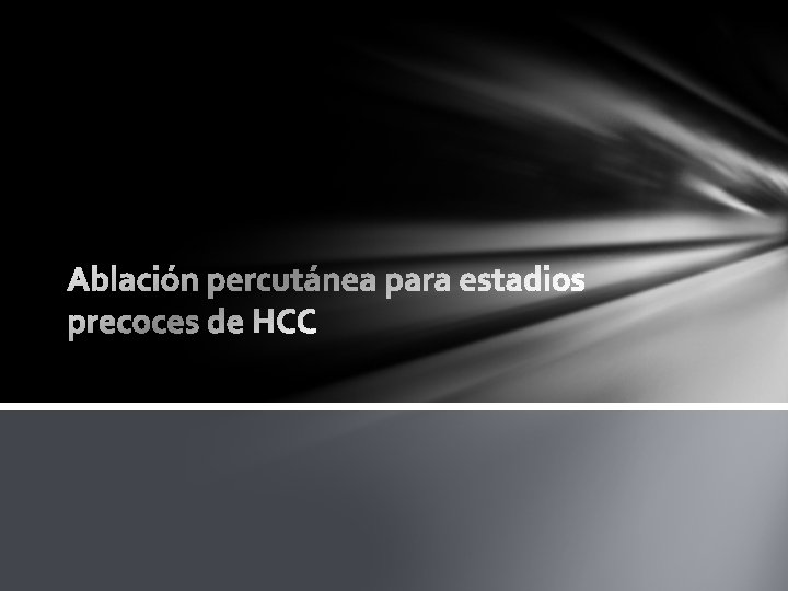 Conclusiones: Ablación percutánea para HCC precoz La RFA está indicada en pacientes con HCC en estadios precoces que no sean candidatos a cirugía ni trasplante hepático La RFA ha demostrado altas tasas de respuestas completas y supervivencias a los 5 años del 33 -54% La RFA se asocia a una mortalidad de hasta 1, 4%
