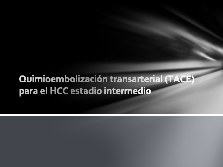 Indicaciones y contraindicaciones de TACE Indicación Tratamiento de HCC estadio intermedio (BCLC B) Contraindicaciones relativas Contraindicaciones absolutas • Tamaño tumoral ≥ 10 cm • Comorbilidades que afectan a la función de un órgano: – Enfermedad cardiovascular activa – Enfermedad pulmonar activa • Varices no tratadas con alto riesgo de sangrado • Obstrucción de la vía biliar o papila incompetente por stent o cirugía Cirrosis descompensada(Child– Pugh B ≥ 8) incluyendo: • • Ictericia Encefalopatía Ascitis refractaria Síndrome hepatorrenal Tumor extenso con remplazamiento masivo de ambos lóbulos Reducción severa del flujo de la vena porta Contraindicaciones técnicas de tratamiento intraarterial hepático Insuficiencia renal (creatinina ≥ 2 mg/d. L o Cr. Cl < 30 m. L/min) Raoul J-L, et al. Cancer Treat Rev. 2011; 37: 212 -20