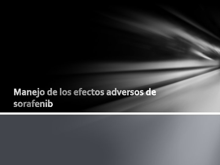 Manejo de la hipertensión La hipertensión suele suceder precozmente • En la mayoría de los casos se maneja con un fármaco antihipertensivo La TA debe ser controlada antes de que se inicie el tratamiento con sorafenib. Se debe monitorizar semanalmente en las primeras 6 semanas de tratamiento En los casos en los que la hipertensión es severa o persistente tras el tratamiento antihipertensivo, se debe discontinuar sorafenib temporalmente o de manera permanente Llovet JM, et al. N Engl J Med. 2008; 359: 378 -90. Cheng A-L, et al. Lancet Oncol. 2009; 10: 25 -34. Wood L. Comm Oncol. 2006; 3: 558 -62. Bhojani N, et al. Eur Urol. 2008; 53: 917 -30.