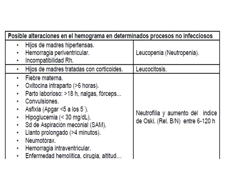 RECUENTO DE CELULAS BLANCAS Y PLAQUETAS • Algunas condiciones pueden alterar el conteo de neutrófilos absolutos – HTG – ASFIXIA – ENFERMEDAD HEMOLITICA – Semanas de gestacion • Las plaquetas pueden disminuir tardíamente Y presente en alrededor de 50% de neonatos.