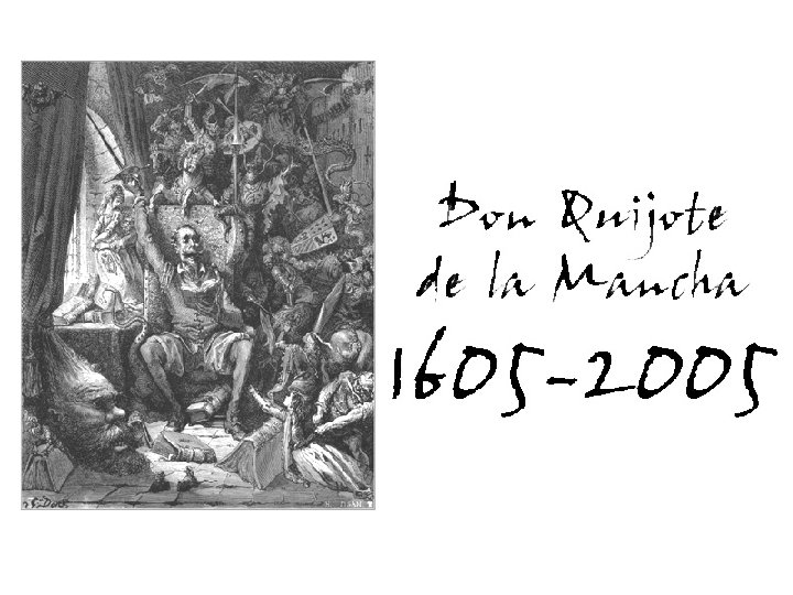 ARGUMENTO Alonso Quijano (Don Quijote) se vuelve loco por leer muchos libros de caballerías. Esta locura hace que intente imitar las aventuras que ha leído: sale de su pueblo, vive una serie de aventuras y regresa a casa vencido.
