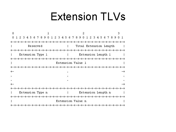 Using a currently reserved bit to indicate this extension is used A query looks like this: 0 1 2 3 4 5 6 7 8 9 0 1 +-+-+-+-+-+-+-+-+-+-+-+-+-+-+-+-+ | Type = 0 x 11 | Max Resp Code | Checksum | +-+-+-+-+-+-+-+-+-+-+-+-+-+-+-+-+ | Group Address | +-+-+-+-+-+-+-+-+-+-+-+-+-+-+-+-+ |E| Resv|S| QRV | QQIC | Number of Sources (N) | +-+-+-+-+-+-+-+-+-+-+-+-+-+-+-+-+ | Source Address [1] | +-+ | Source Address [2] | +. -+. . . +-+ | Source Address [N] | +-+-+-+-+-+-+-+-+-+-+-+-+-+-+-+-+ |Extension Type | Extension Value | ~ ~ +-+-+-+-+-+-+-+-+-+-+-+-+-+-+-+-+