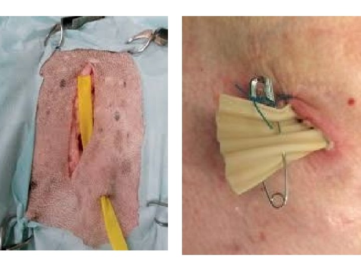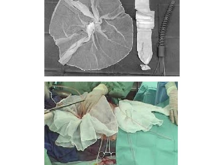 3) Le Mikulick – o Mèche particulière : grande compresse en forme de « parachute » remplie montage spécifique de compresses ou de 2 à 5 mèches à prostate. – Permet de drainer des zones où 1 drainage par déclivité est impossible. – o Mise dans des cavités à la suite d’une intervention chirurgicale (cavité anale, abdominale). Le retrait n’est pas un acte infirmier. – Souvent un antalgique est prescrit avant le pansement ou encore fait au bloc op. L’IDE transmet au chirurgien ses observations.
