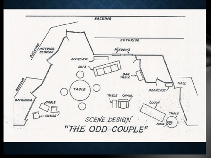 Assignment Tips for diagramming: – Use a ruler/straight edge and a PENCIL. – Use 4 squares per meter (roughly 1 square per foot) Grading criteria: – Clarity and readability of labelling. – Cleanliness and clarity of drawing. – Correct placement of furniture and architecture. DUE FEB 8 th WRITE THIS IN YOUR PLANNER Diagram the Drama room. (the drama room is roughly 56 feet long and 24 feet wide) Diagram the following set with: – Three walls. In the U back wall there is one large window far L. – In the L wall are two doors. The D door opens out into the kitchen. The U door opens onto the stage revealing a small closet. – Against the R wall at CR is a bookcase. – In the R wall, D of the bookcase is a door opening out into a garden. – A long rectangular table CR with four chairs along the U side , one chair at the L end of the table, and one chair at the R end. – A desk DL with a chair at it, facing L and another chair U of the desk facing R.