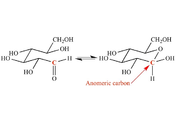 Anomerik Karbon • Karbohidratlarda asiklik formdaki karbonil karbonu, siklik formda anomerik karbon atomu adını alır.