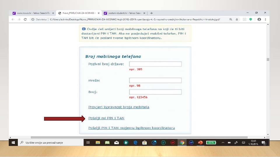 • Kada se učenik prvi put prijavi u sustav www. postani-student. hr sa svojim elektroničkim identitetom AAI@Edu. Hr treba unijeti broj svojega mobilnog telefona na koji želi SMS-om primiti PIN i TAN. • PIN je osobni identifikacijski broj koji služi za dodatnu zaštitu i privatnost podataka svakoga učenika. • TAN je broj kojim učenik potvrđuje značajne radnje u sustavu. • Nakon primitka SMS-a s PIN-om i TAN-om učenik se prijavljuje u sustav ispravno upisujući korisničku oznaku, lozinku i PIN.