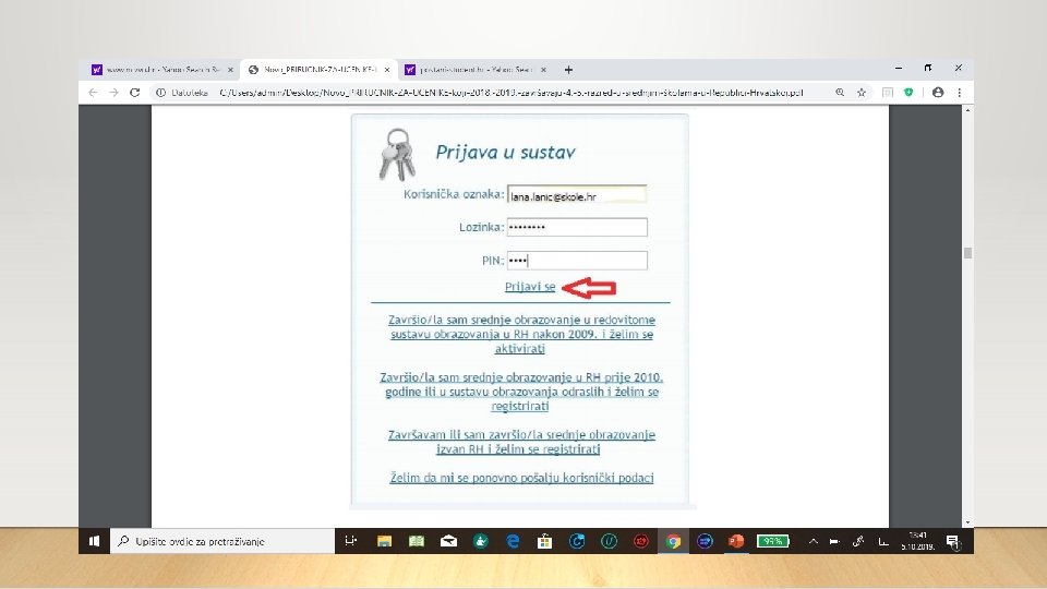Polje za upis PIN-a ostavlja se praznim, a prijavu završavaju klikom na poveznicu Prijavi se