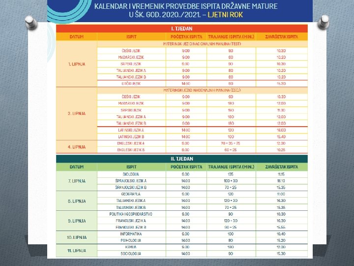 13. 7. 2021. Objava privremenih rezultata ispita državne mature 13. 7. 2021. – 15. 7. 2021. Rok za prigovore 20. 7. 2021. Konačna objava rezultata ispita državne mature 22. 7. 2021. Podjela svjedodžbi i potvrda