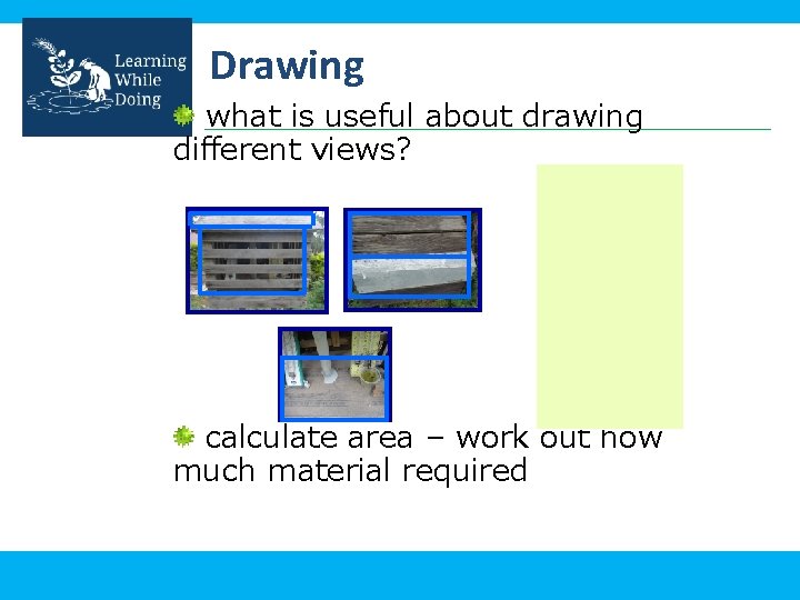 Drawing what is useful about drawing different views? calculate area – work out how much material required