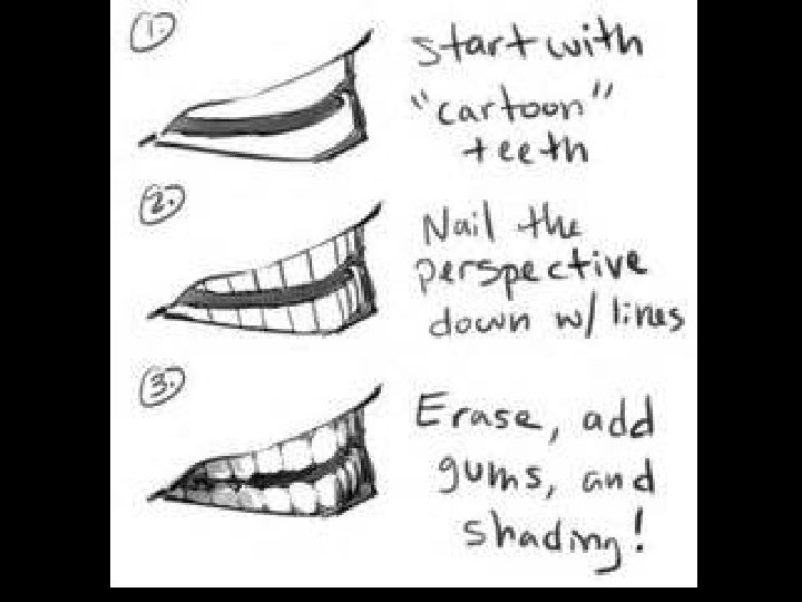 Your first week of assignments includes many drawings that you must hand in for grading. The following list is what you will be graded on: You should have several extra sketches show attempts to get it right on all of these exercises. You also must indicate by using shadowing techniques and line where a ligth source is coming from. • Day 1: draw 3 sample head indicating where facial features will lie realistically. This should be sketchy. (Each head is worth 33. 3 points out of 100) • Day 2: draw 2 pairs of eyes realistically as possible showing proper spacing between each eye and include eyebrow. You should have several extra sketches show attempts to get it right on all of these exercises. You are also required to draw one eye from a side view. (Each pair of eyes is worth 40 points and the side view eye is worth 20 points out of 100) • Day 3: draw at least six noses as realistically as you can. 3 frontal views and 3 side views are required. (Each nose is worth 16. 6 points out of 100) • Day 4: Draw 6 mouths as realistically as you can and one must be open and show some teeth. Remember the teeth overlap and do not go straight across. (Each mouth is worth 16. 6 points out of 100) • Day 5: Draw 6 ears as realistically as possible and try at least two different angles of view. (Each ear is worth 16. 6 points out of 100) • Day 6: Draw at least 5 styles of hair, short and long. Then do one more drawing that is either a curl or a braid. (Each hair drawing is worth 16. 6 points out of 100)
