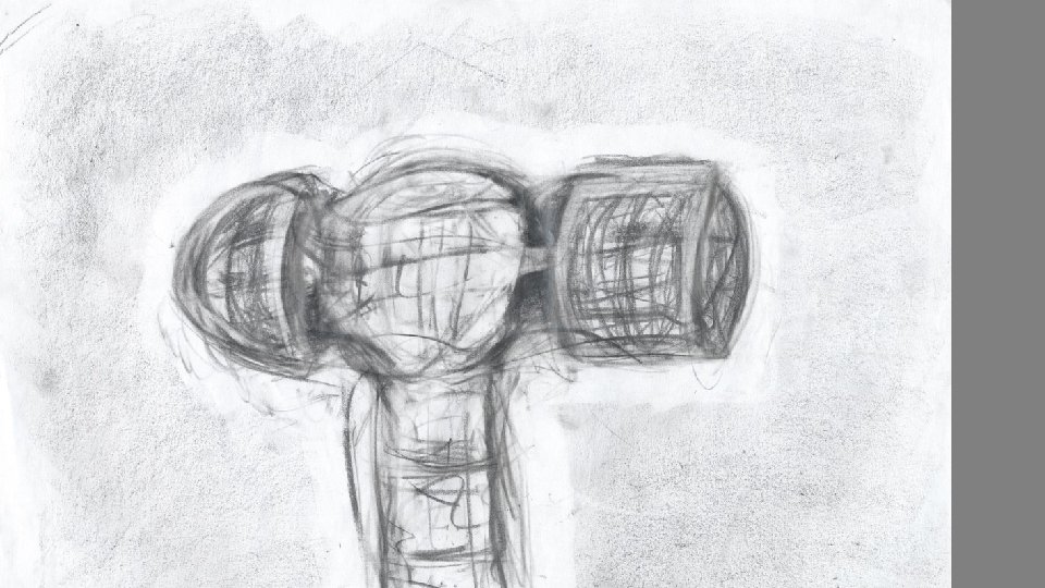 Look at the marks. They have a semiotic value – they describe in marks the form of the object. (7 second gesture drawing achieved once the hammer has been memorised through HVOD method).