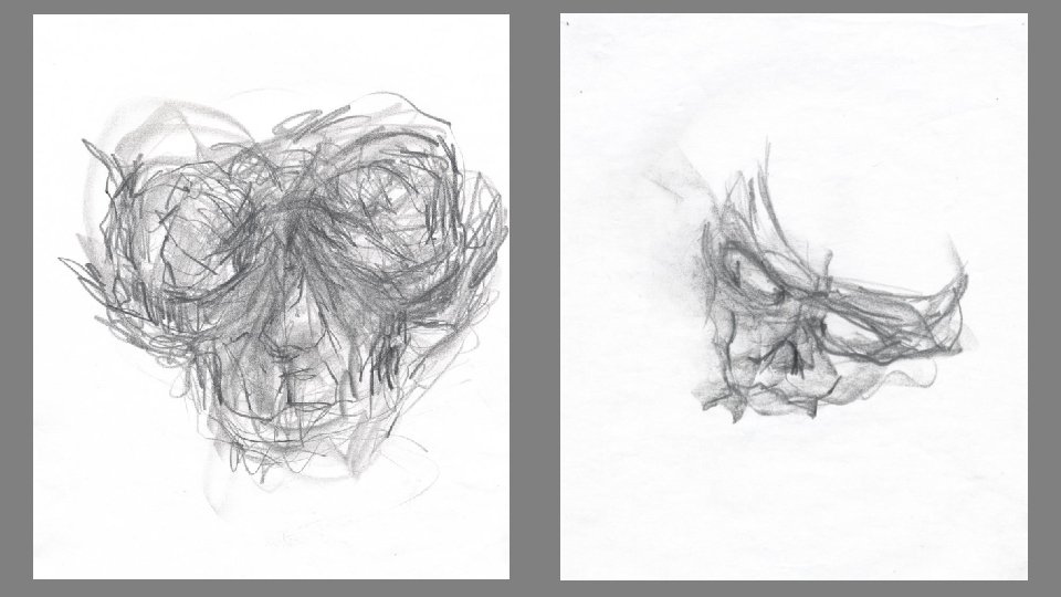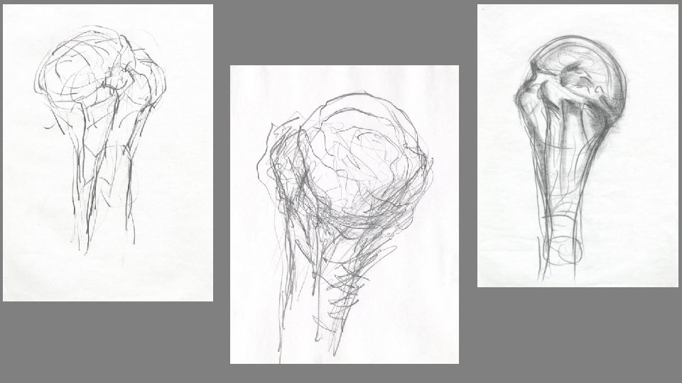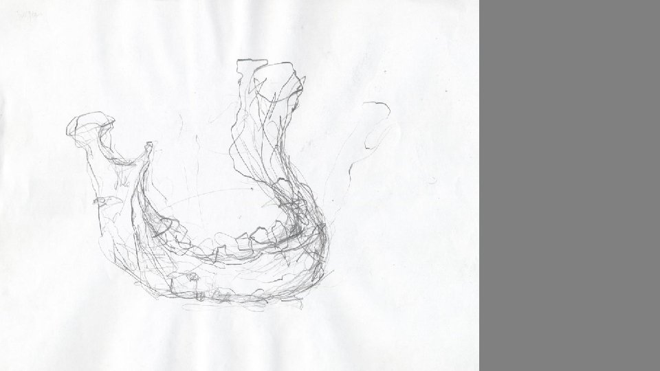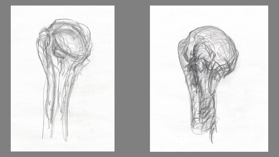 Observation and drawing study focussing on the mandibular condyle. Like the humerus, the condyle was drawn from all sides (i. e. ‘in the round’) in order to understand the global relationship of each surface to every other surface. Notice the descriptive value that the marks have in describing the form of the condyle.