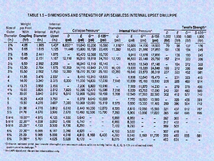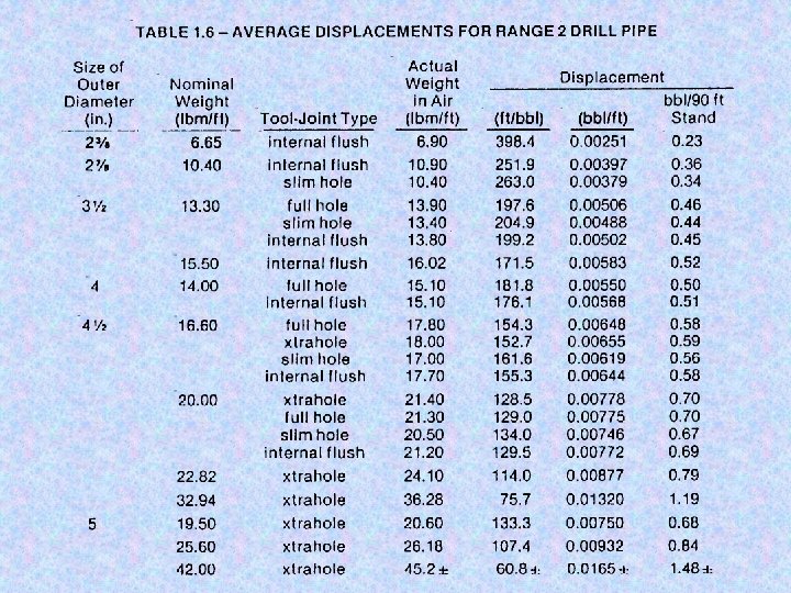 Rotary System…. . . Using Table 1. 5, the inner diameter of 5 -in. , 19. 5 lbm/ft drillpipe is 4. 276 in. ; thus, the capacity of the drillpipe is And the capacity of the drill collars is The number of pump cycles required to circulate new mud bit is given by