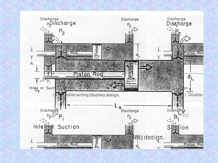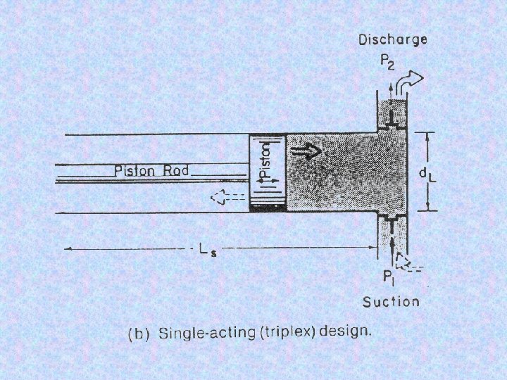 Circulating System…. . . Pump Displacement (1) Double Acting Figure 1. 25 (a) dr = Piston rod diameter d. L= Liner diameter Ls= Stroke Length (Stroke = one complete pump revolution). Forward Stroke Volume Displaced = ( /4) d. L 2 Ls Backward Stroke Volume Displaced = ( /4) (d. L 2 - dr 2 ) Ls (for one Cylinder) Total Volume =Fp= 2 Ls( /4) (2 LL 2 - Lr 2 ). Ev (1. 10) (for two Cylinders) Fp= Pump factor or pump displacement cycle.