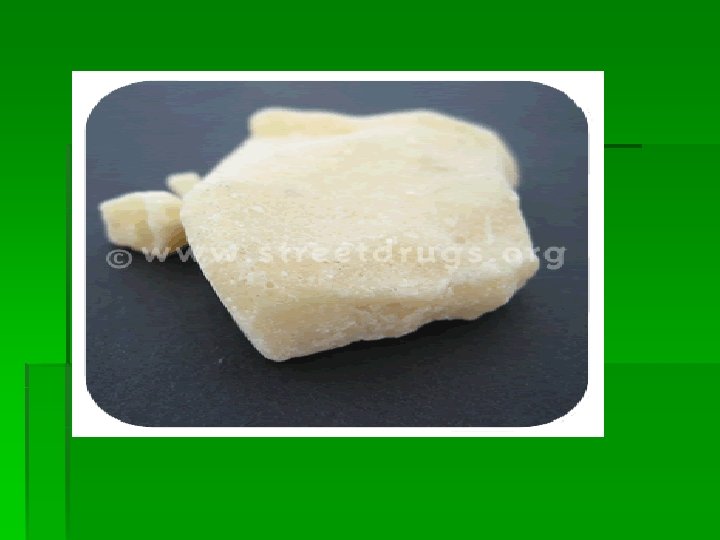§ § § Špecifiká závislosti na kokaíne Denná dávka – žuvanie 25 -50 kokových listov Crak Silné anorektikum (ženy, nymfomanické správanie) Toxické psychózy Odvykanie (spánok, časté relapsy, depresie – šedý svet)