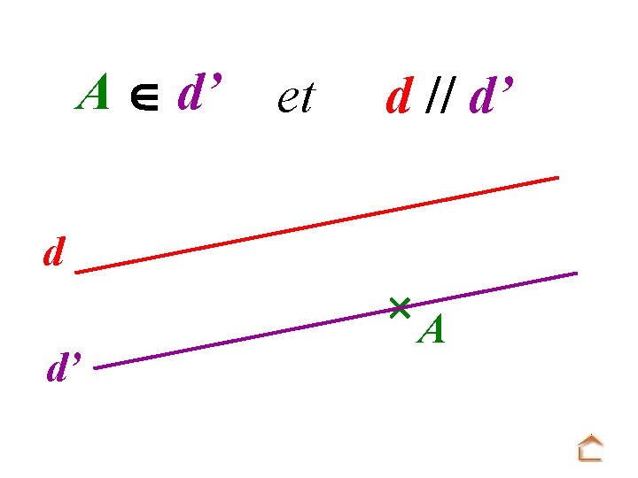 On trace la droite d’ parallèle à la droite d passant par le point A. d d’ A