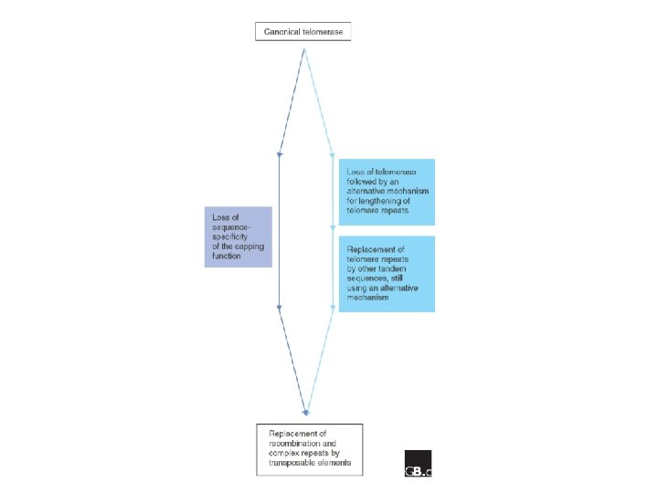Evolution of Transposition • • Loss of sequence dependence of capping Loss of telomerase Use of an ALT Transposable element recruitment to maintain telomeric activity. • OR • Telomerase diverged from transposable elements.