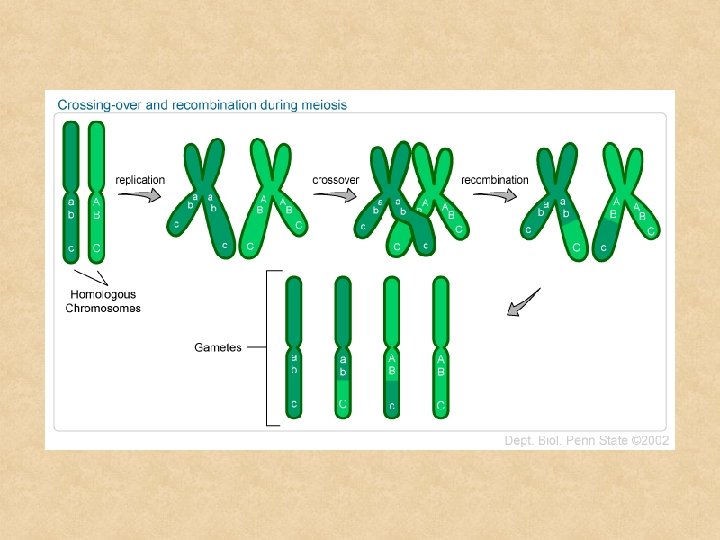 Il Crossing-over - i geni allocati sullo stesso cromosoma ma in loci differenti possono essere separati l’uno dall’altro mediante il fenomeno del crossingover i crossing-over determinano il fenomeno della ricombinazione genica la ricombinazione avviene durante la profase I della meiosi