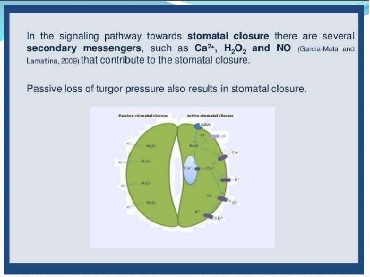 Ø Phytohormone play vital role in drought tolerance in plants. Ø Under drought condition, endogenous contents of auxins, gibberellins, cytokine, usually decrease while those of abscisic acid and ethylene increase. Ø There are many signals that induce stomatal closure among these the best known signal is ABA.