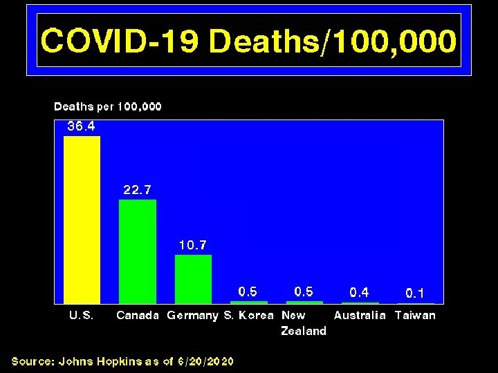 Trump’s Weakening of Pandemic Response Capacity n 2017 Trump’s hiring freeze at CDC left 700 vacant n n n positions. 2018 - Abolished Global Health Security team of NSC. 1600 government scientists have left positions since January 2017. Many key science policy positions (e. g. OSHA Administrator) left vacant. 2020 Defunded WHO (global surveillance and risk mitigation) “I told them to do less testing” (Tulsa rally, June 20)